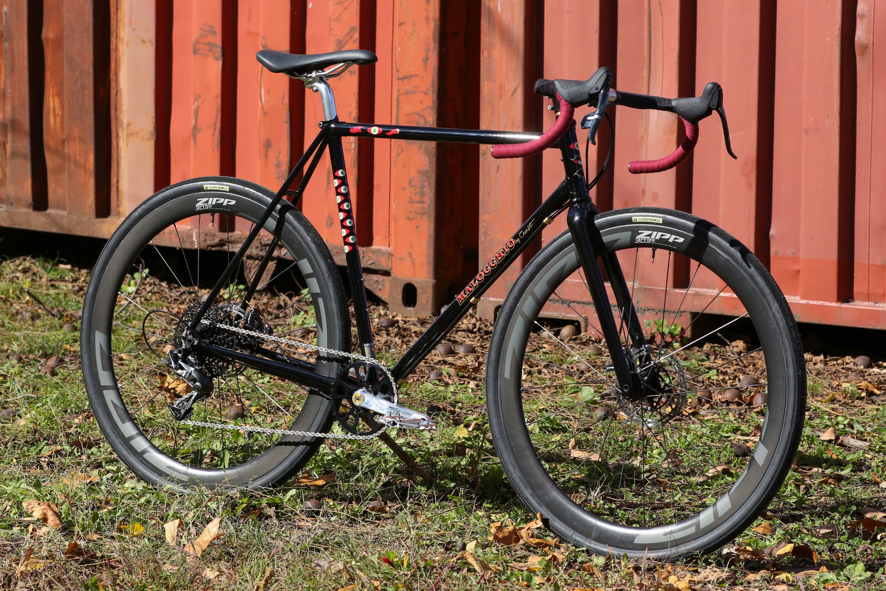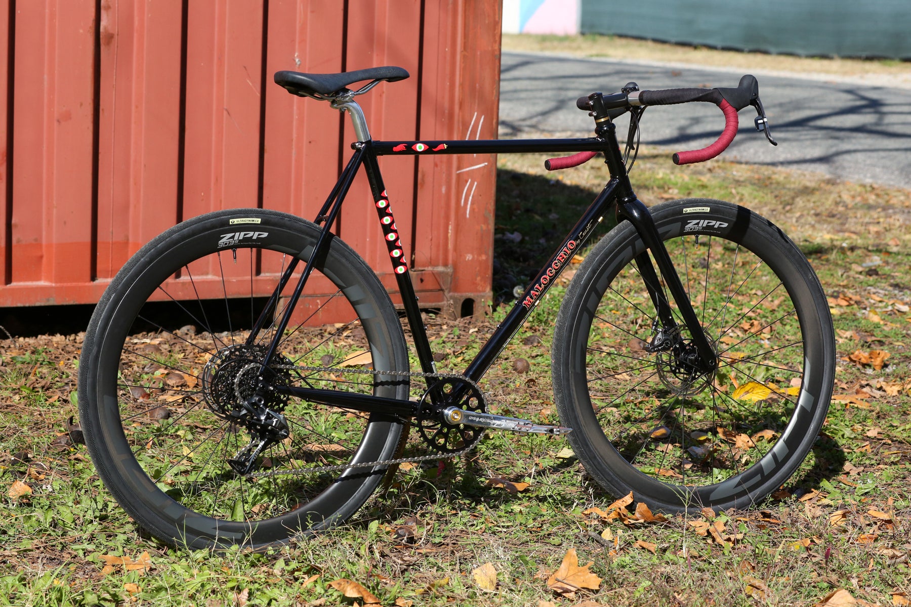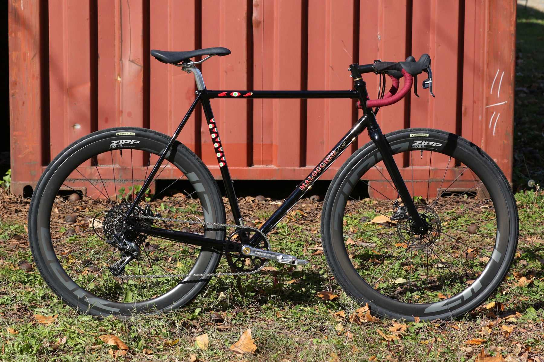 Sram Force 1 Shifter and Derailleur paired up with a GX 10-42t Cassette and 165mm White Industries Square Taper Road Crank with a 40t Chainring. Levers are hooked to TRP Spyre SLC Calipers paired to 160mm Rotors