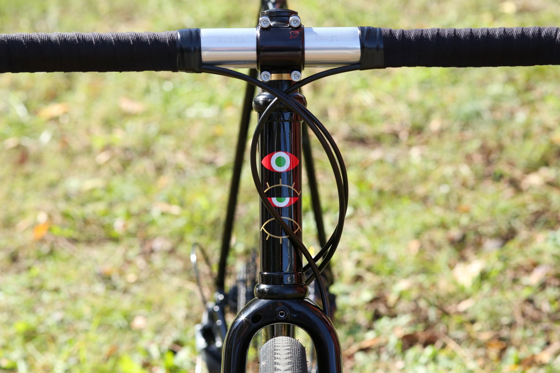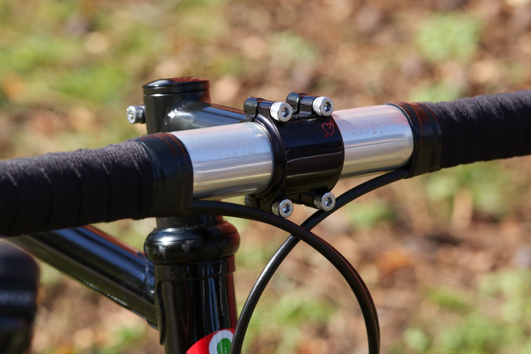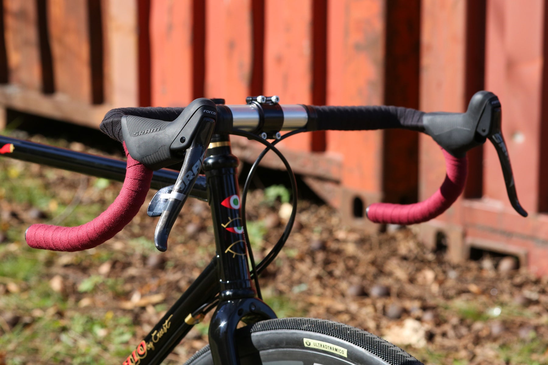 80mm SimWorks Rhonda holding onto a 56cm Nitto X Crust Shaka bar wrapped in Newbaums Bar Tape