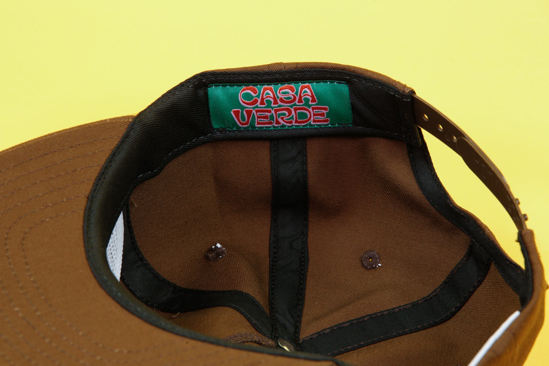 Casa Verde Pinch Front 5-Panel Grandpa Style Cap with rope detail and snapback.