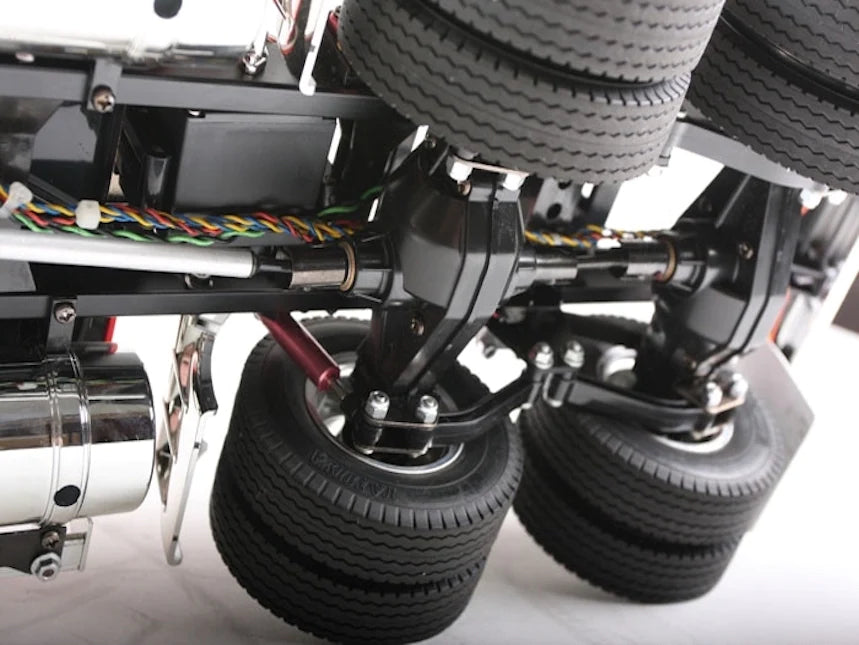 The separately sold Multi-Function Control Unit (MFC) offers light, sound, and vibration operation to accompany your R/C truck experience. Engine sounds have been digitally recorded from the actual truck, and together with air horn, gear shifting, and many other realistic sounds, give you the feeling that you are driving the real thing! Headlights, brake lights, fog lamp, hazard lights and turn signal operations are also at your fingertips.